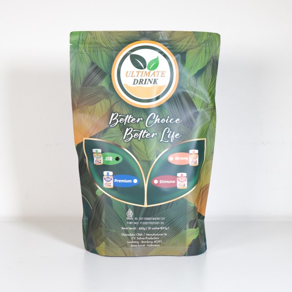 Ultimate Drink adalah minuman herbal siap seduh yang terbuat dari rempah-rempah berkualitas premium Indonesia seperti jahe, kunyit, serai, jeruk nipis, gula aren, madu, pasak bumi, biji hitam, dan lainnya. Diciptakan dengan sentuhan modern namun tetap mempertahankan rasa tradisional, ini memberikan manfaat kesehatan maksimal. Tersedia dalam beberapa varian untuk detoksifikasi, sistem kekebalan tubuh, vitalitas pria, kesuburan, dan program berat badan