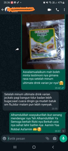 Berawal dari adopsi resep JSR (Jurus Sehat Rimpang) dari dr. Zaidul Akbar, Ibu Pretty berharap banyak orang juga dapat merasakan manfaatnya, akhirnya kami meracik sendiri serbuk dalam kemasan, yaitu Resep Minuman Kesehatan Ultimate Booster dari dr. Zaidul Akbar yang kami singkat menjadi ULTIMATE DRINK.